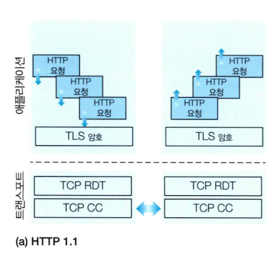 - 중간에 요청이 손실되면 나머지 요청은 손실된 바이트가 재전송되서 올바르게 수신될 때까지 대기 (= HQL 차단 문제)