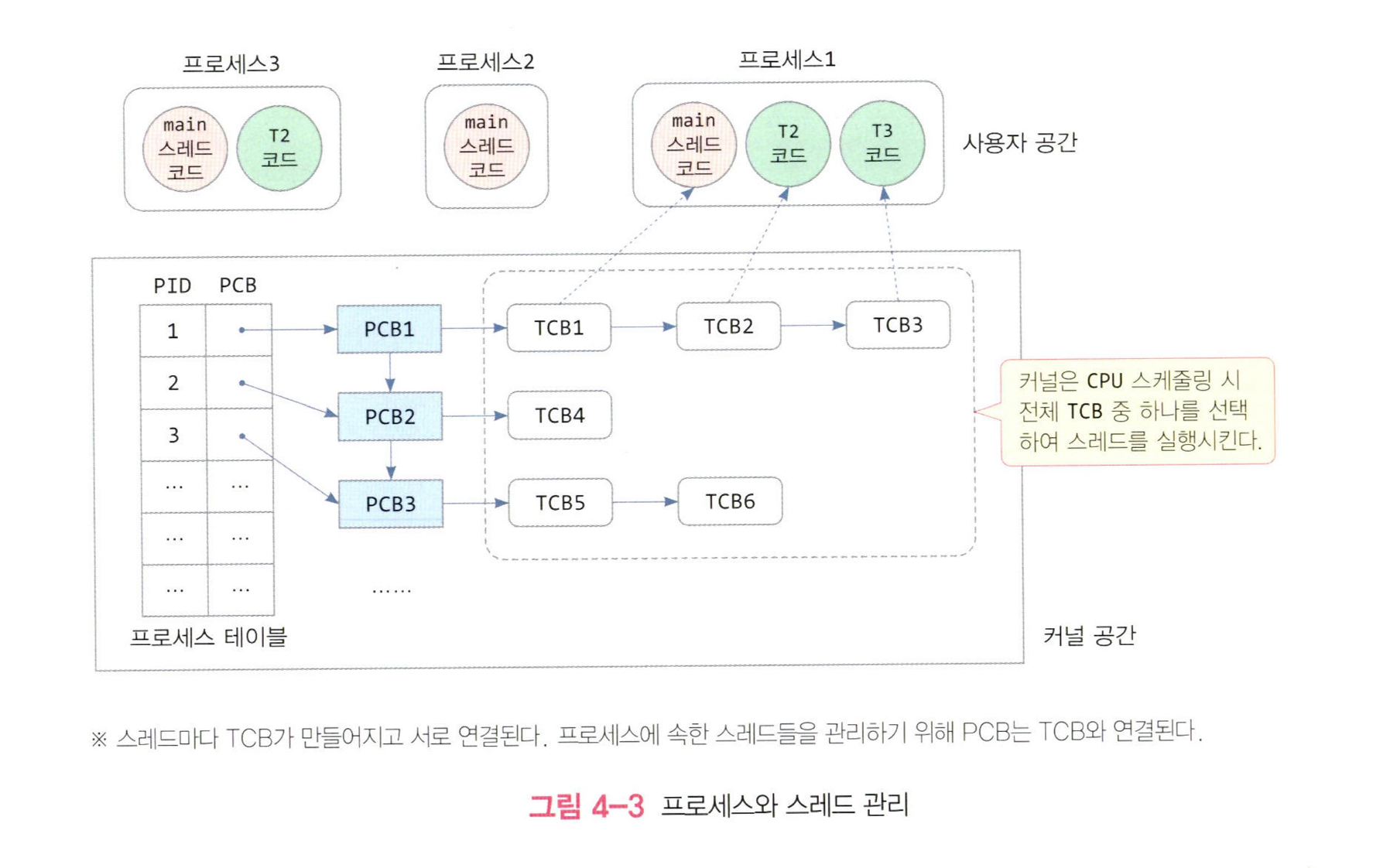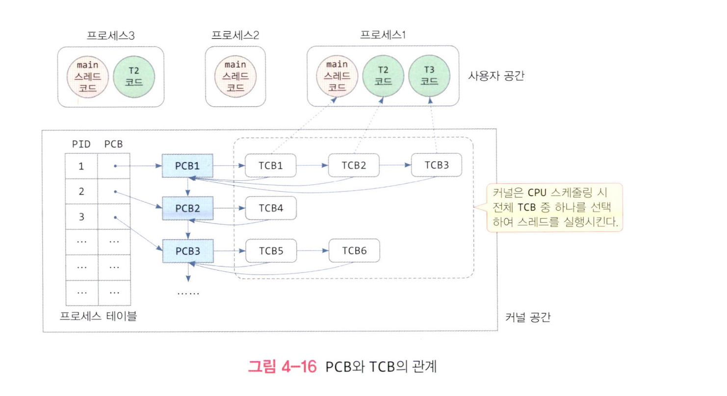 - 프로세스마다 PCB가 생성되고 스레드마다 TCB 구조체가 생성됨