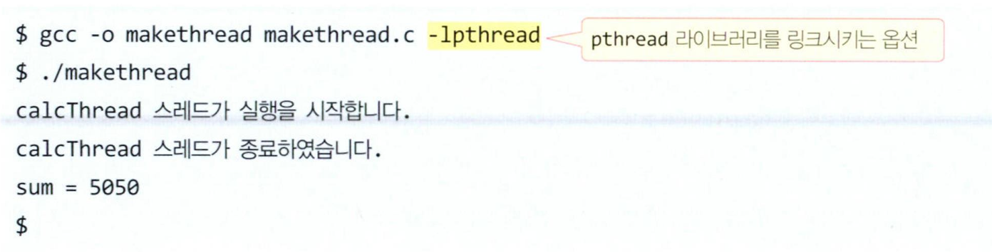 pthread_create(&tid, &attr,calcThread, "100"); // calcThread 스레드 생성