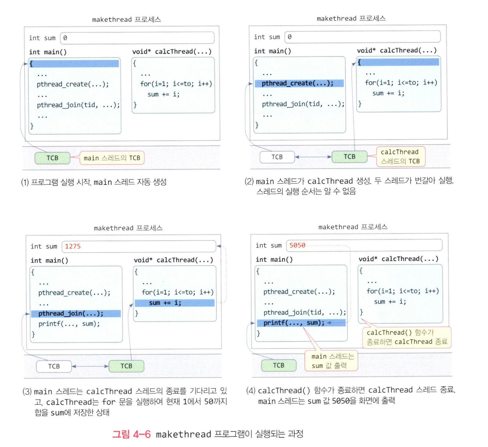 - 스레드마다 TCP(Thread control Block) 구조체를 두고 독립된 단위로 스레드 관리