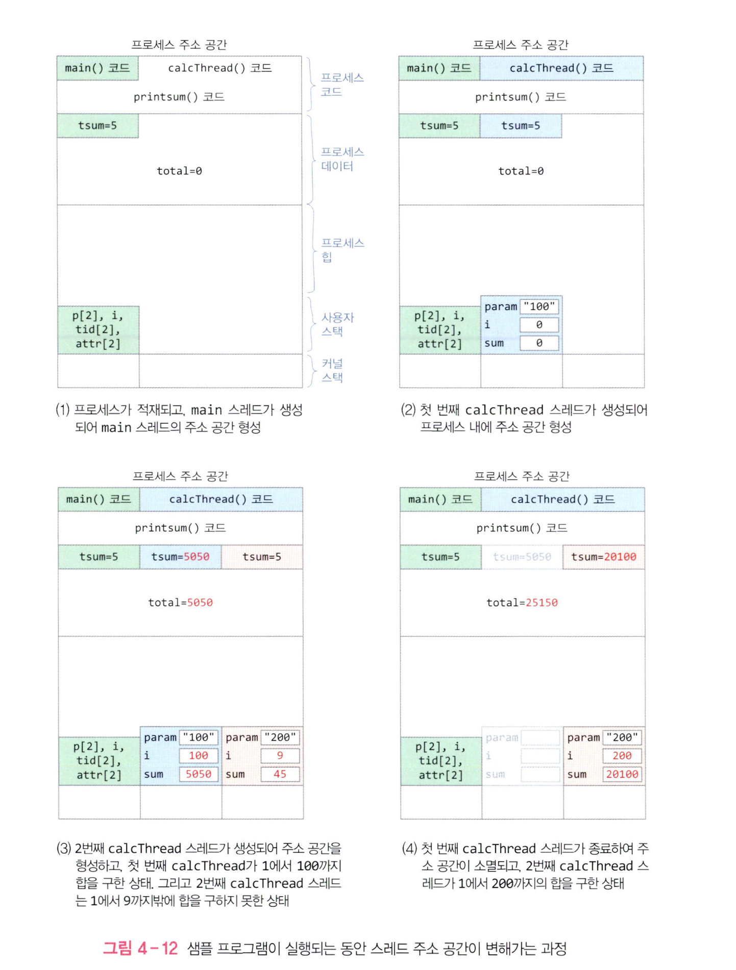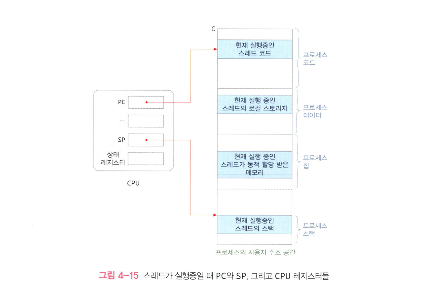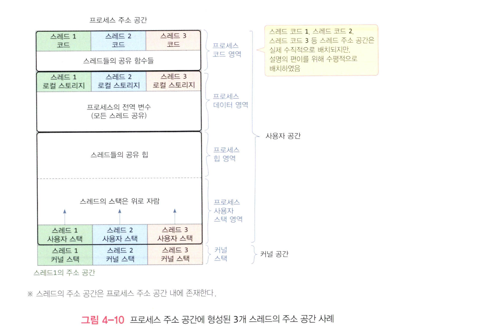 - 스레드들은 프로세스의 주소 공간을 나누어 사용