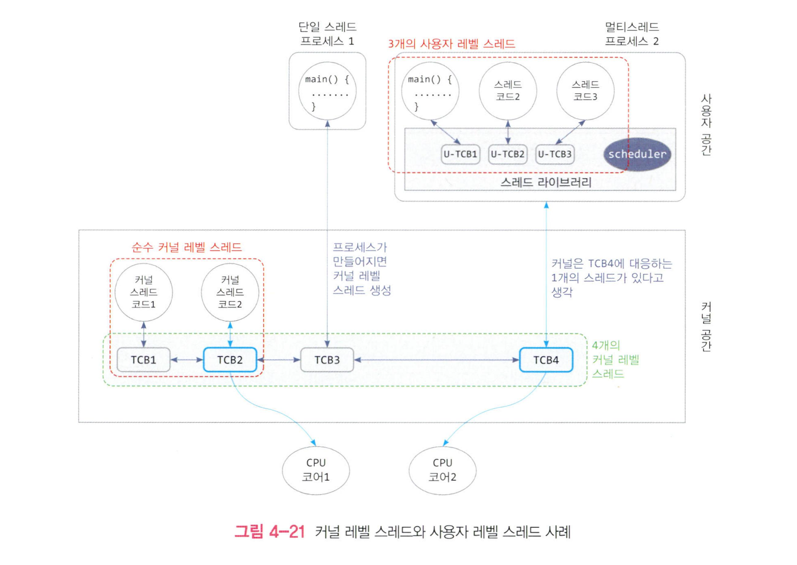 TCB가 커널에 의해 커널 공간에 만들어지고 커널에 의해 스케줄되는 스레드