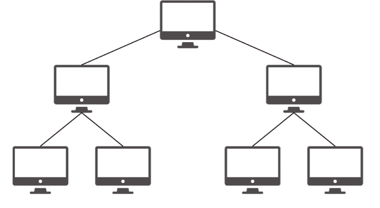 - 트리 토폴로지 계층형 토폴로지, 노드의 추가, 삭제가 쉽고 특정 노드에 트래픽이 집중될 때 하위 노드에 영향을 끼침
