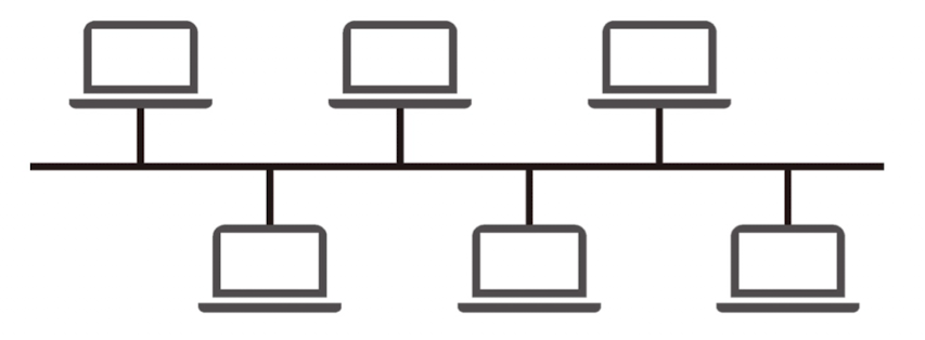 - 중앙 통신 회선 하나에 여러 개의 노드가 연결되어 공유하는 네트워크 구성