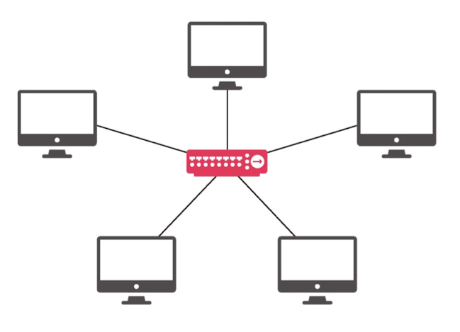 - 중앙에 있는 노드에 모두 연결된 네트워크 구성
