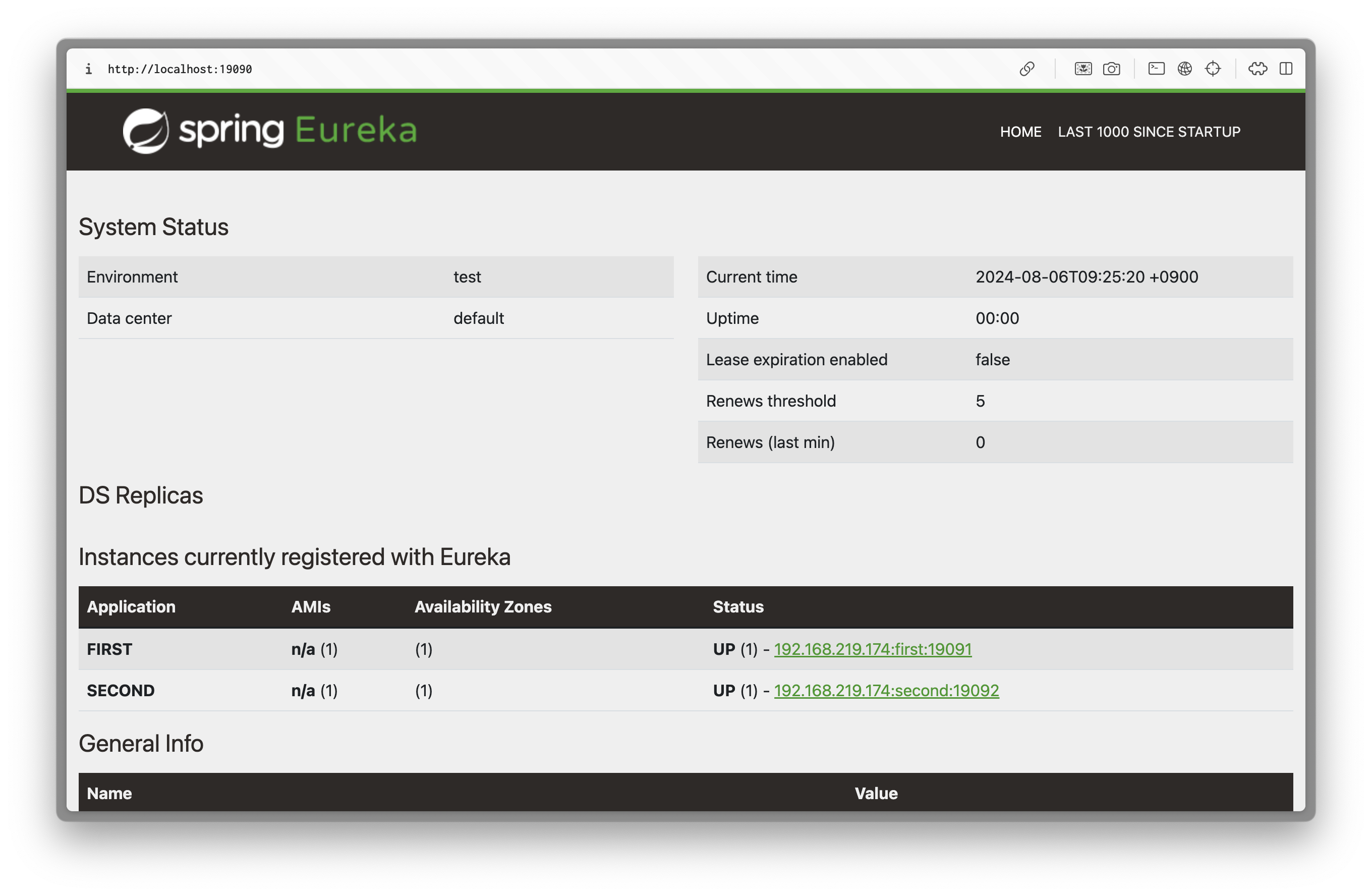 5. 서버와 클라이언트 동시에 실행시키고 서버 포트 localhost:19090으로 접속하면 first와 second client가 동시에 잡히는걸 확인할 수 있다!