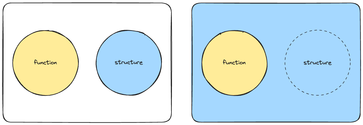 - 기능과 구조는 나란히 있는 것이 아니라 구조가 기능을 뒷받침해야 안정적이고 변경이 용이하다