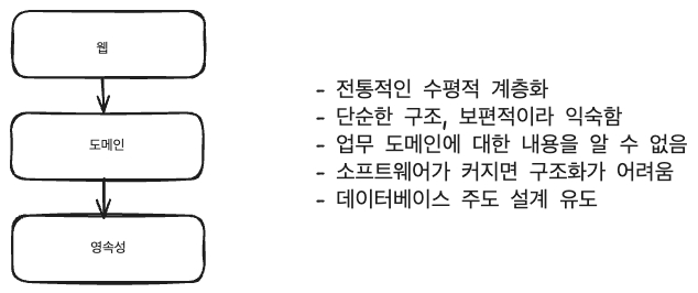 - 계층 구조가 분리되지 않음
