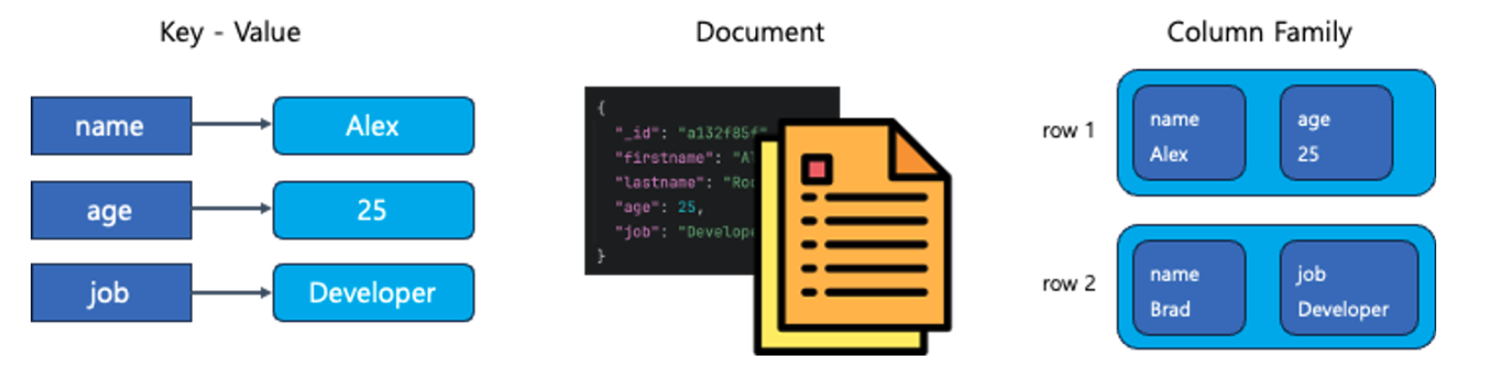 - (์ผ๋ฐ์ ์ผ๋ก) SQL์ ์ฌ์ฉํ์ง ์์ (Not only SQL)