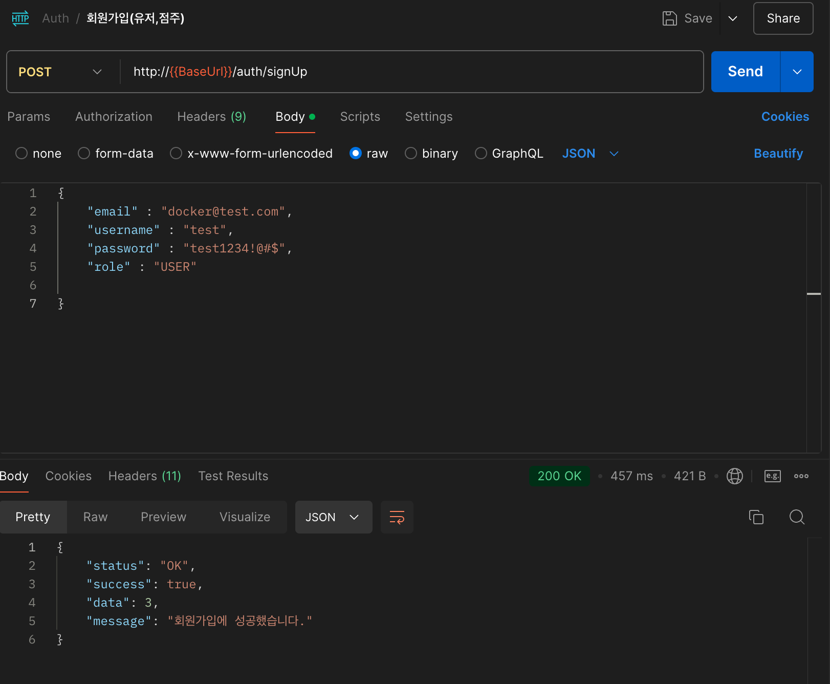 포스트맨에서 BaseUrl 부분에 EC2 주소를 넣고 요청을 보내면 잘 들어가는걸 확인할수있다