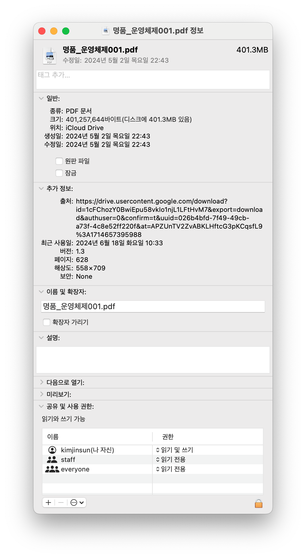 - 파일이 만들어진 시간, 수정된 시간