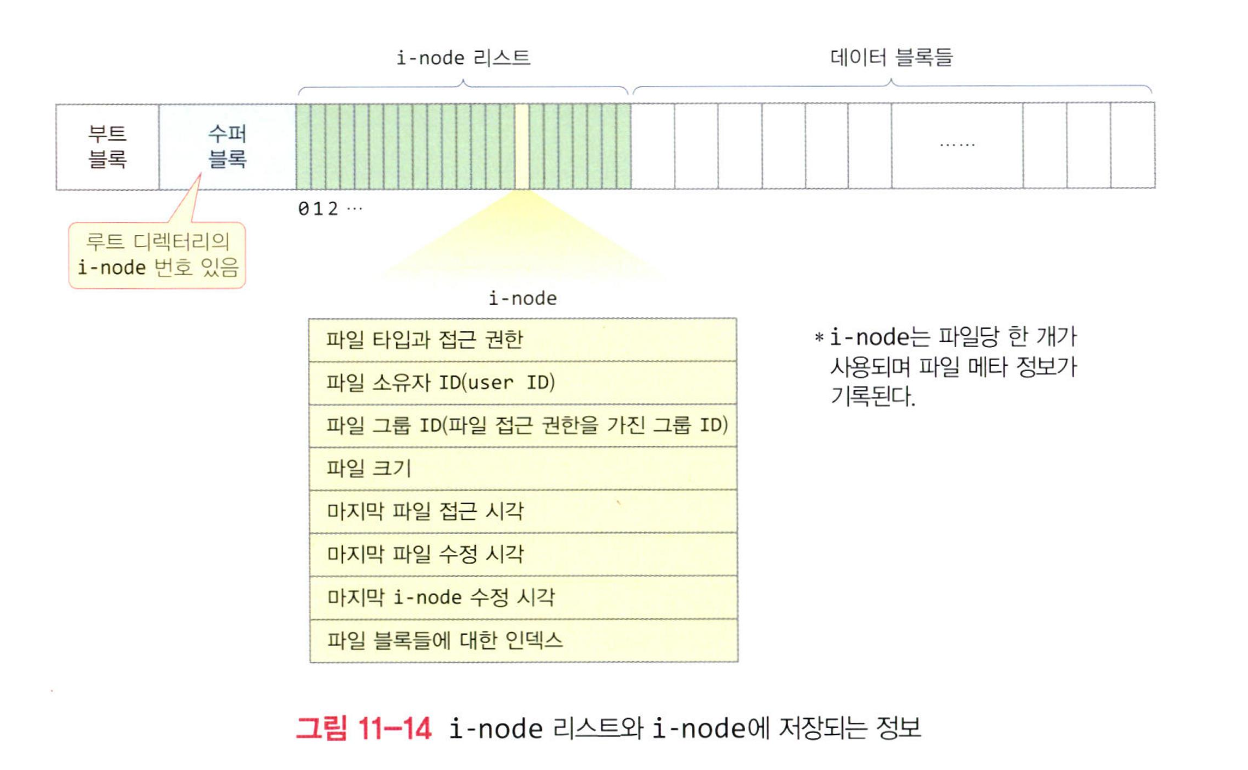 - i-node 리스트의 크기와 자유 i-node 에 관한 정보는 수퍼 블록에 기록된다