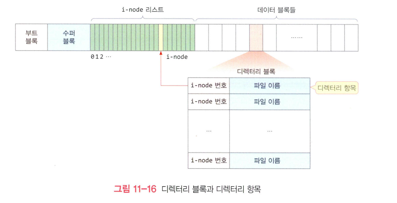 - 파일이나 서브 디렉터리의 i-node 번호와 이름으로 구성