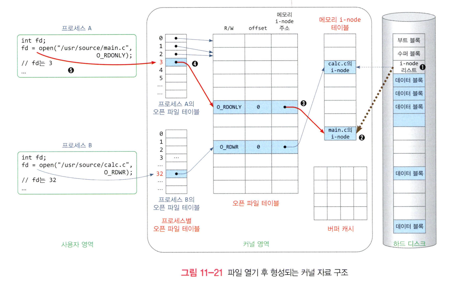 - 프로세스별 오픈 파일 테이블의 인덱스